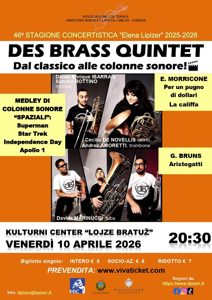DES BRASS QUINTET – Venerdì 10 Aprile 2026 – ore 20.30 – Kulturni Center “Lojze Bratuž” – Gorizia