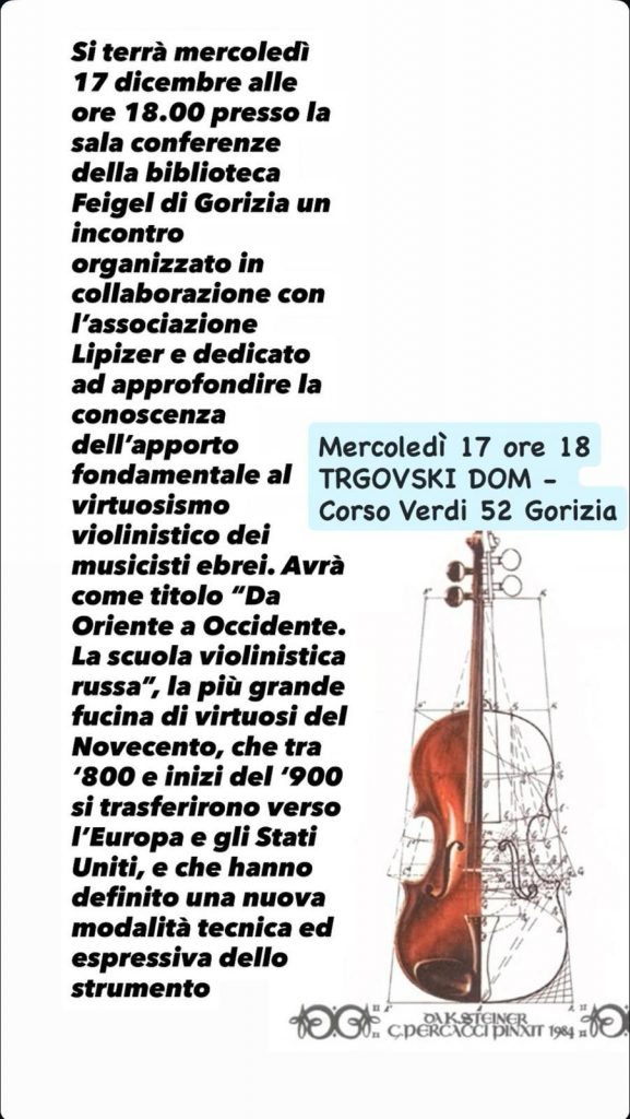 CONFERENZA DI LORENZO DRASCEK: DA ORIENTE A OCCIDENTE. LA SCUOLA VIOLINISTICA RUSSA – BIBLIOTECA “DAMIR FEIGEL” CORSO VERDI NR. 52 – ORE 18.00