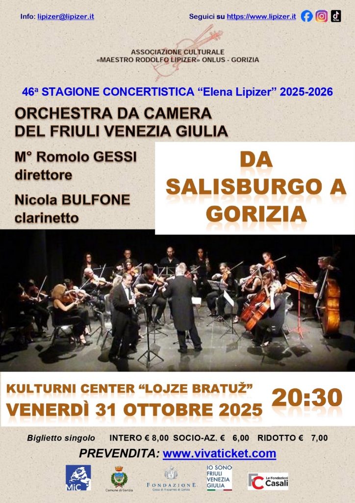 ORCHESTRA DA CAMERA DEL FRIULI VENEZIA GIULIA – Venerdì 31 ottobre 2025 – ore 20.30 – Kulturni Center “Lojze Bratuž” – Gorizia